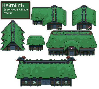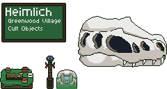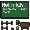 There are a variety of tiles available for building a small village. In addition to ground, house, and biome tiles, there are also a few utility items (barrels, an axe, and a workbench) as well as ritual items (a dino skull, a dino stake, and an altar).