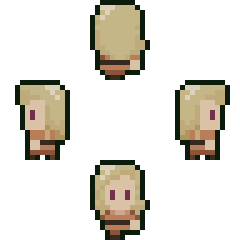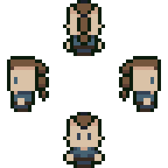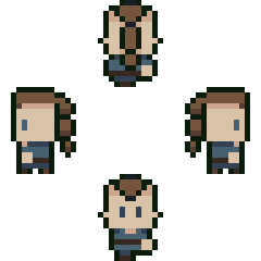 There are two player characters, each of which has been animated both in idle as well as in motion. There is also an additional death animation.